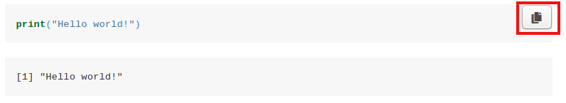 Each chapter consists of the content part, discussing new R tools and techniques with examples, followed by a summary, which includes the list of the functions used in the chapter along with short explanations and finally a set of practical _exrcises with solutions. All the material presented in the chapter - the R Script, the Markdown file, the exercises and the data - are available to be downloaded at the top of each chapter page. Throughout each chapter’s content, R code is always presented in “chunks” followed by the output they produce, as you can see in the image below. Note that you can always use the button in the top right corner to copy the content of the chunk into the clipboard and paste into your R session.