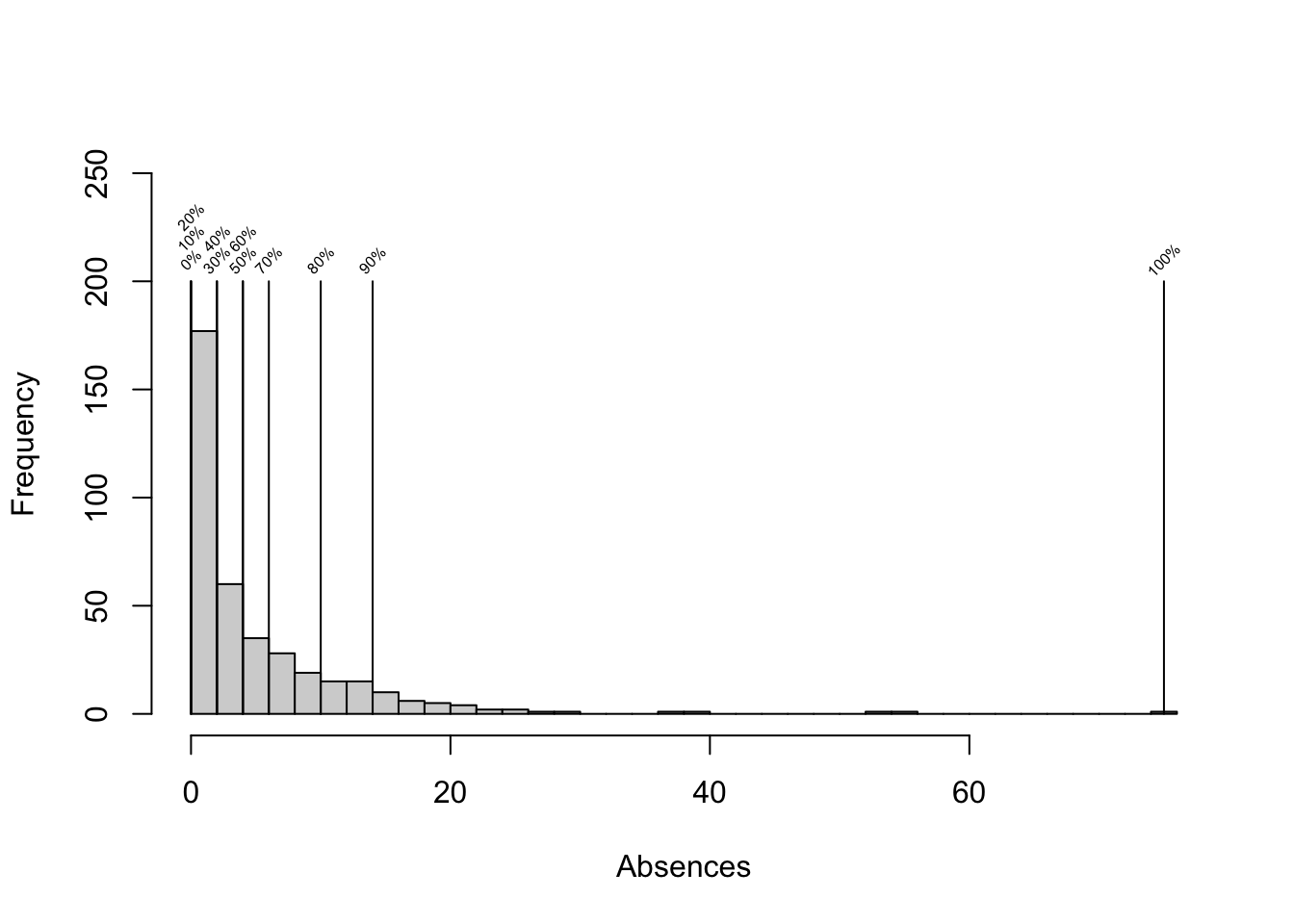$ absences : int 6 4 10 2 4 10 0 6 0 0 ...