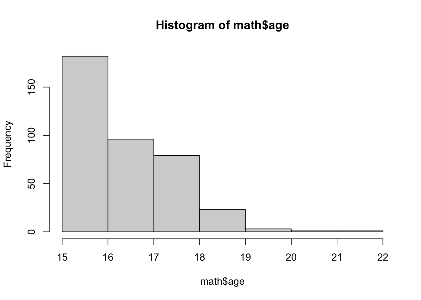 $ age : int 18 17 15 15 16 16 16 17 15 15 ...
