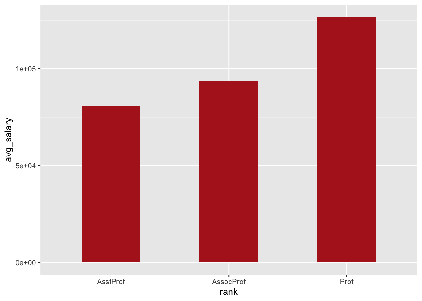 ggplot(salary_by_rank, aes(x = rank, y = avg_salary)) +
