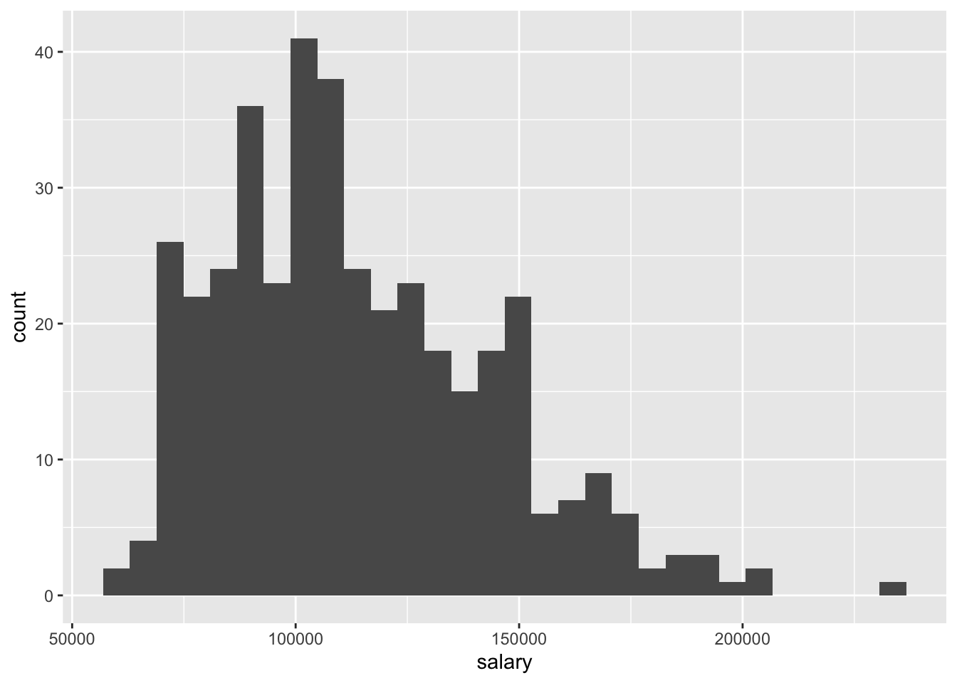 ggplot(Salaries, aes(x = salary))